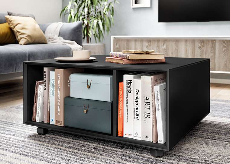 Nos tables basses ont un caractère affirmé grâce aux facettes et à leurs formes géométriques. Pratique : La table basse peut être déplacée grâce à ses roulettes et offre un espace de rangement supplémentaire.