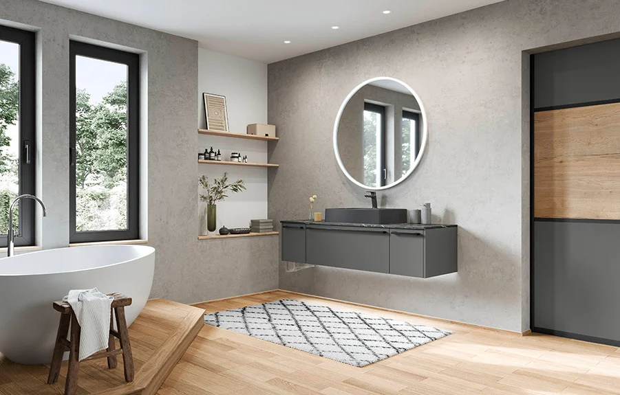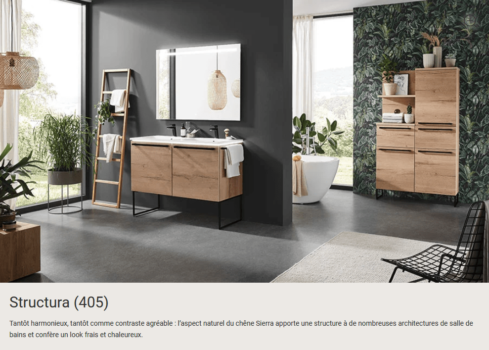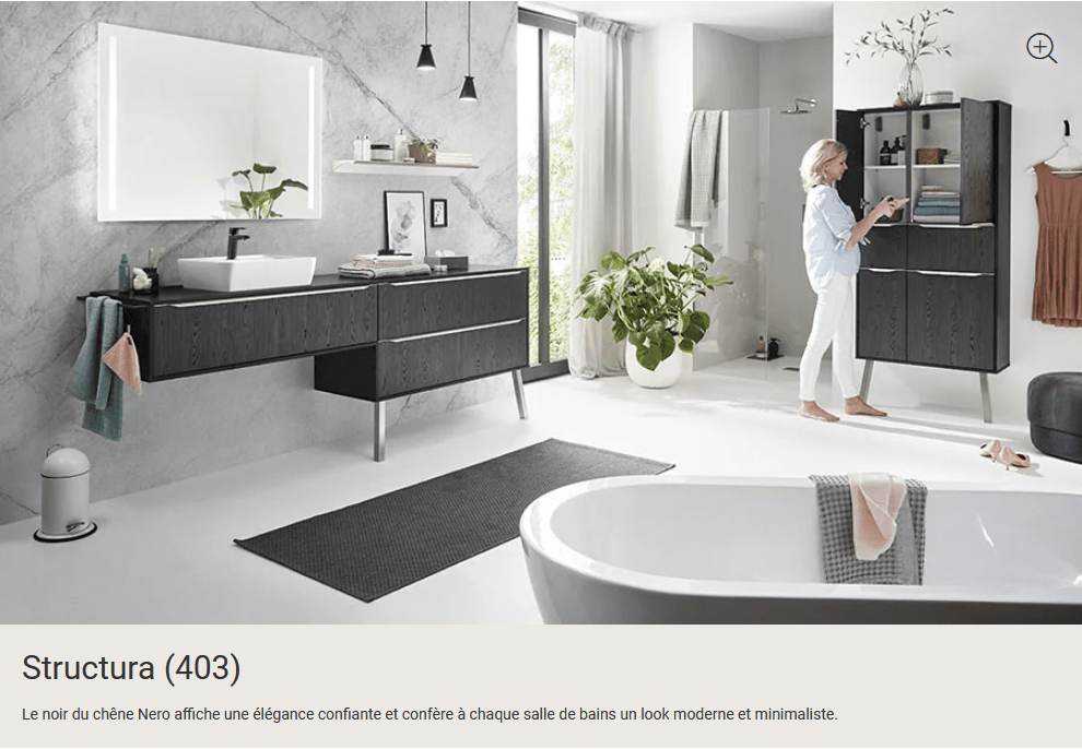 Pour que ce lieu vous convienne parfaitement, nous vous proposons des meubles de salle de bain haut de gamme inspirés de la nature ou des tendances déco actuelles. Aspects bois chaleureux, ardoise de haute qualité, béton contemporain, surfaces brillantes ou mates : nous proposons des designs esthétiques qui peuvent être combinés individuellement pour satisfaire toutes les envies. De cette façon, vous pouvez vraiment profiter de votre temps dans la salle de bain.